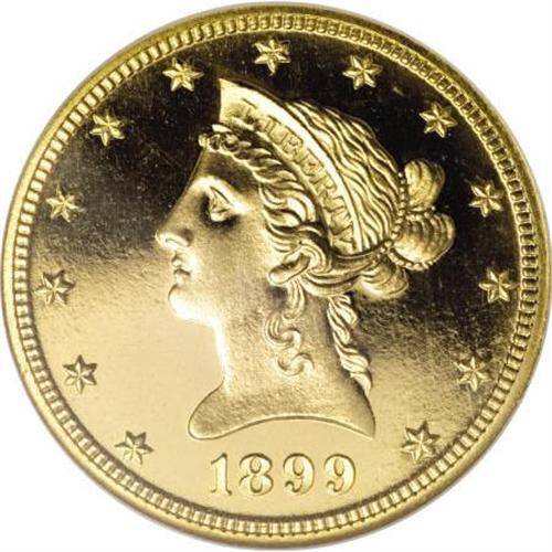 <B>1899 $10 PR66 Ultra Cameo NGC.</B></I> It has been nine years since we offered a proof 1899 Liberty eagle in so high a grade--and that piece, which formerly resided in the fabled Ed Trompeter Collection, was certified by NGC as PR66 Cameo rather than the PR66 Ultra Cameo NGC has assigned to the present coin. Although the recorded mintage is 86 pieces, proofs are extremely rare and seldom appear in the marketplace: Akers in 1980 estimated that only 25-30 pieces are known. The Breen <I>Proof Encyclopedia</B></I> notes, "Much rarer than commonly believed; seldom shows up." More recently, the Garrett-Guth <I>Gold Encyclopedia</B></I> seems to be understating the rarity of the issue by saying that "auction appearances are also among the most frequent for the series, with an average of two pieces coming up for sale every year." (The average actually appears to be 1.5 coins per year.)<BR> Of course, such terms as "frequent" need to understood within the larger context of "Just how rare is proof gold overall?" More specifically, one might ask, "How rare are proof Liberty Head eagles?" As one measure, a quick perusal through Heritage's permanent auction archives will reveal that of the more than 26,000 Liberty Head eagles we have offered in the last 13 years since we began maintaining those archives, only a bit more than 1%, or 294 pieces, were proofs. It is also revealing to note that we have offered, in absolute terms, fewer Liberty Head proof gold proof eagles than any other Liberty Head proof gold denomination.<BR> Finally, regardless of the absolute rarity of proof gold and proof Liberty Head eagles in particular, this special piece represents an amazing <I>conditional rarity.</B></I> Of the total 778 Liberty Head eagles that NGC has certified in all grades, only 122 are graded PR66 or PR67 by NGC, and of those pieces only 60 are PR66 Ultra Cameo or PR67 Ultra Cameo. It is absolutely true that the years 1898 through 1900 appear to be the most common issues for high-grade proof gold Liberty Head eagles with Cameo or Ultra Cameo contrast, but save for in comparison to some other proof gold dates, they are rare by almost any other conceivable measure. <BR> The surfaces on this piece present a remarkable "white-on-black" cameo contrast, and the piece is evenly balanced from side to side. The rich reddish-gold surfaces are remarkably deep in their mirrored reflectivity, and the devices are heavily frosted. As one would expect from a high-grade proof gold coin from this era, the fields show a rippling, orange-peel effect. An outstanding Ultra Cameo proof ten, this PR66 Ultra Cameo example is one of two pieces certified at NGC, with only two PR67 Ultra Cameo pieces finer (1/08).<BR><I>From The Ultra Collection.</B></I><BR><BR><b>Shipping:</b> Coins & Currency (<a target="_blank" href="http://www.heritageauctions.com/common/shipping.php">view shipping information</a>)