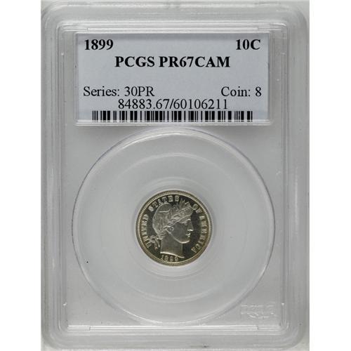1899 10C PR67 Cameo PCGS. An impeccable, well mirrored 1899[10C] PR67 Cameo PCGS.