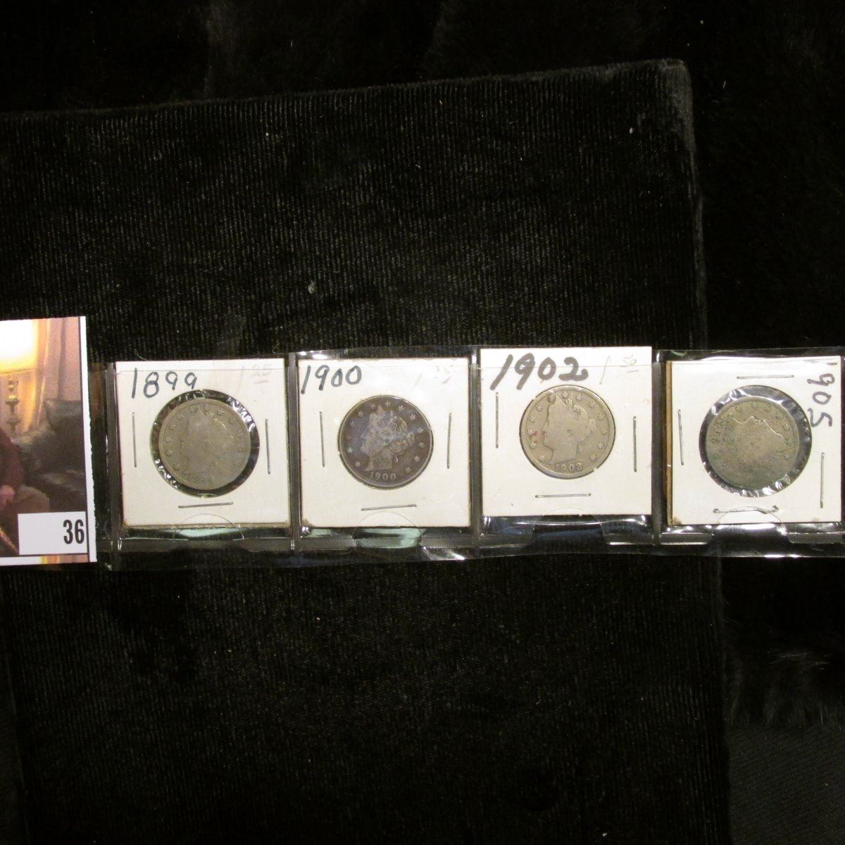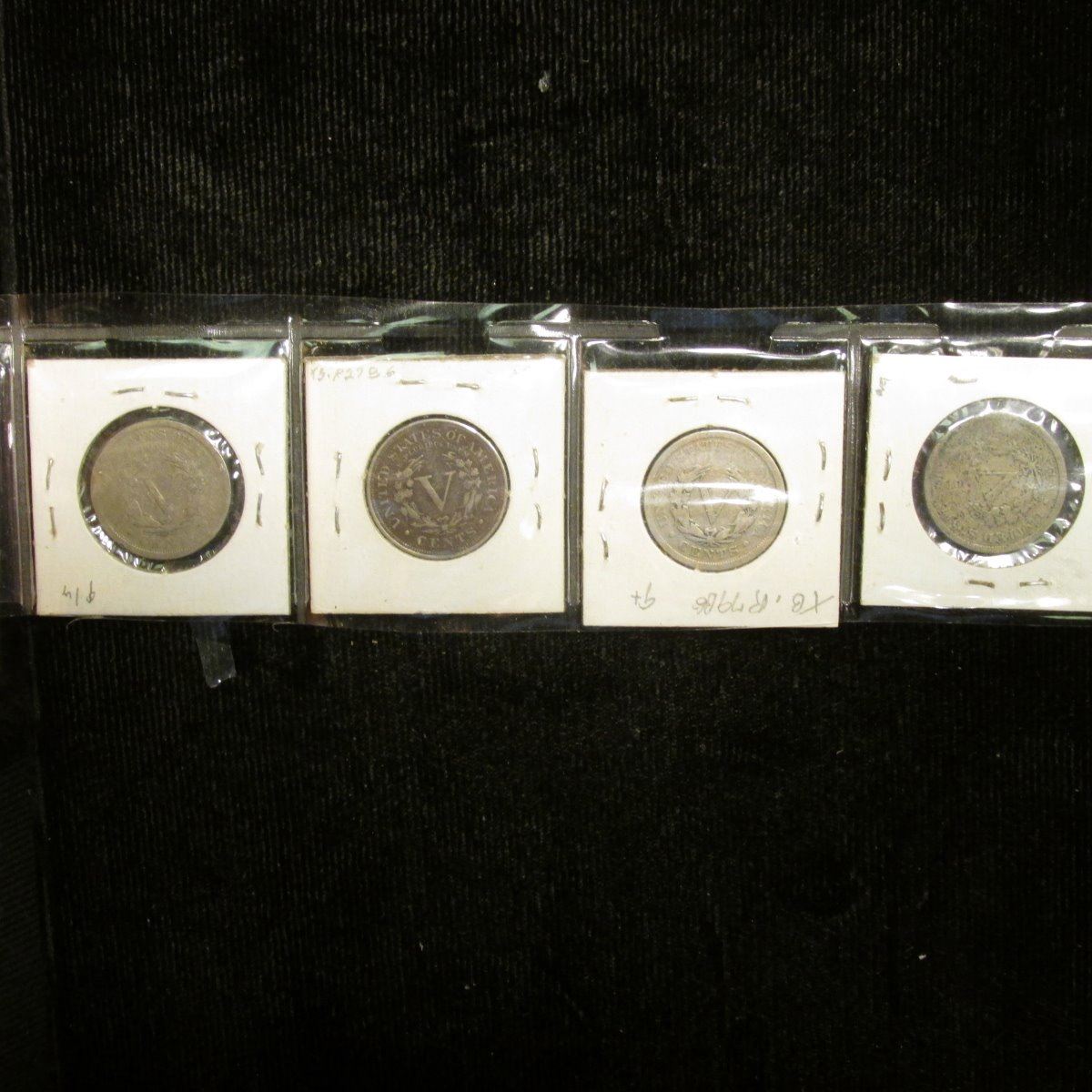 1899, 1900, 1902, & 05 U.S. Liberty "V" Nickels, Good to Fine.