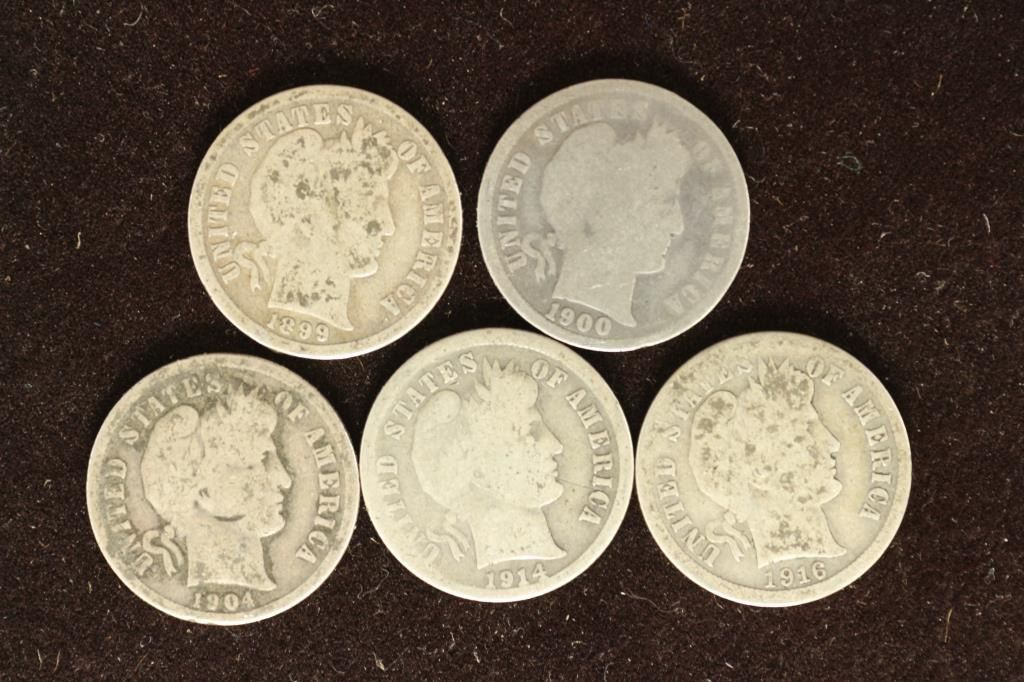 1899, 1900, 1904, 1914-S & 1916 BARBER DIMES