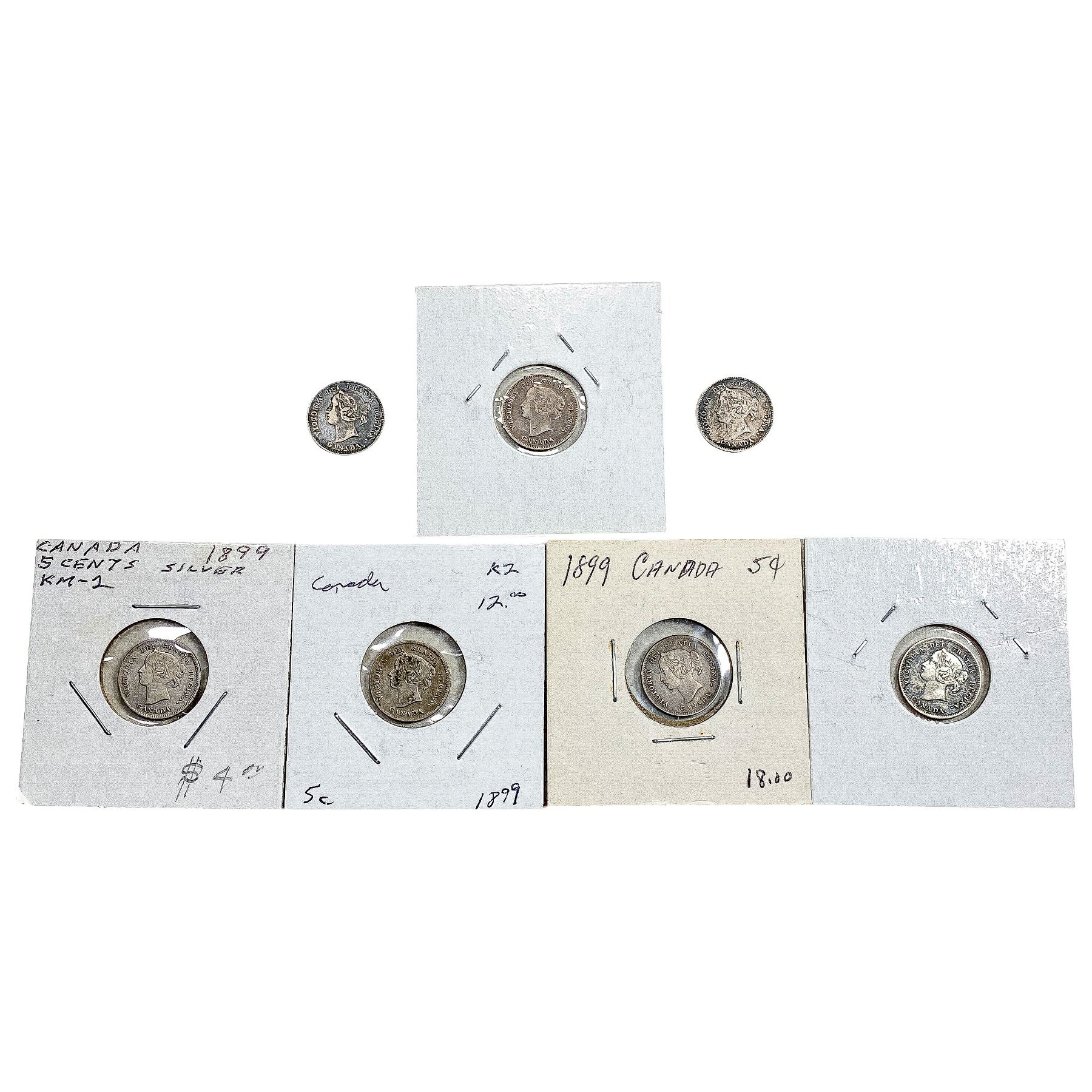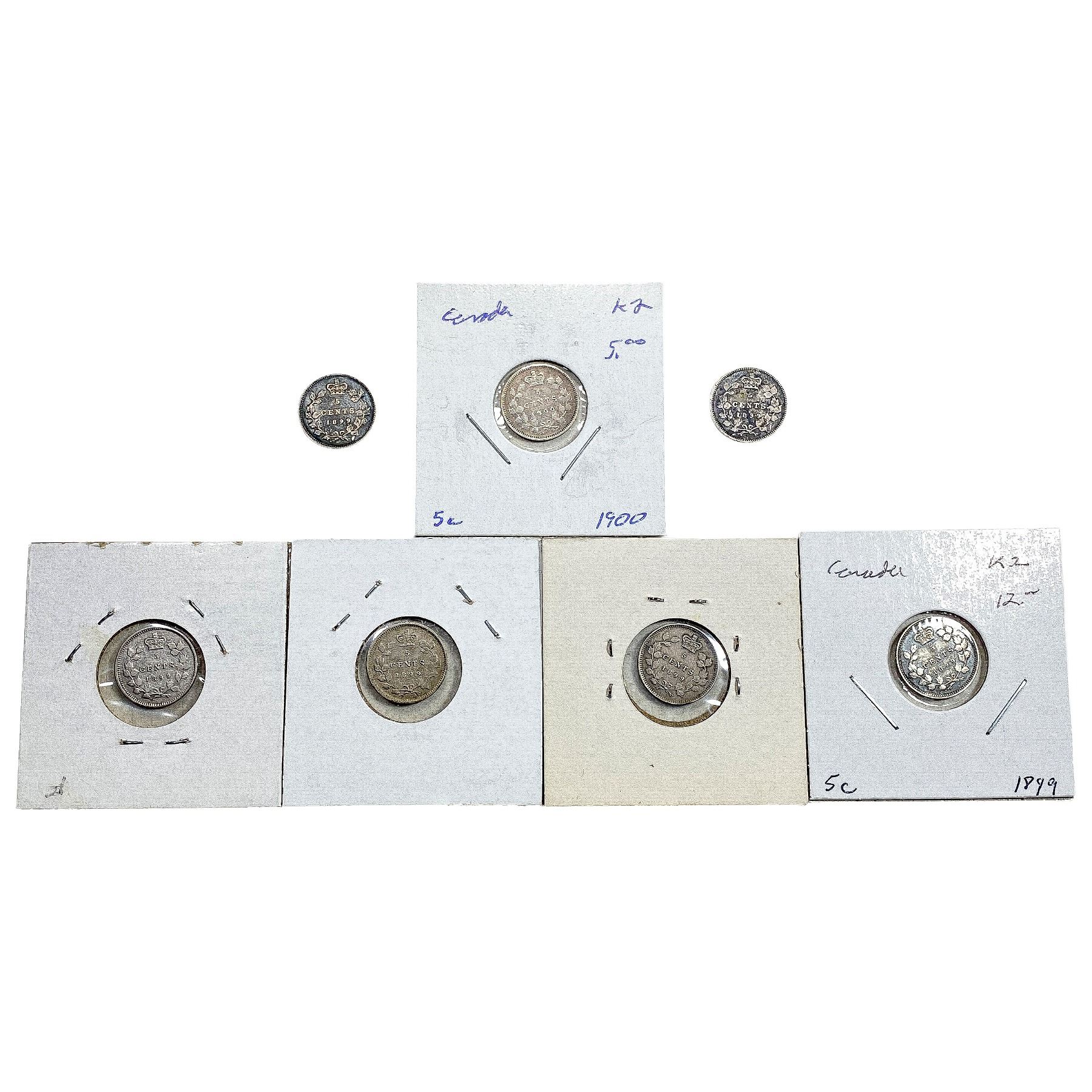 1899-1900 Better Date Canada 5 Cent Silver [7 Coins]