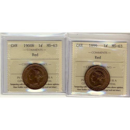 1899, 1900H 1¢, both coins are ICCS MS-63 Red