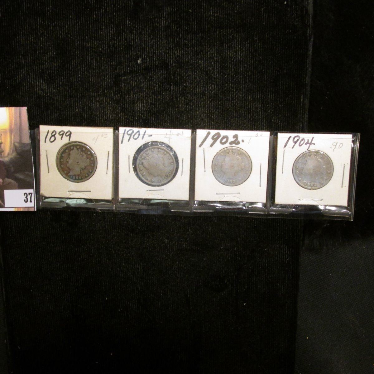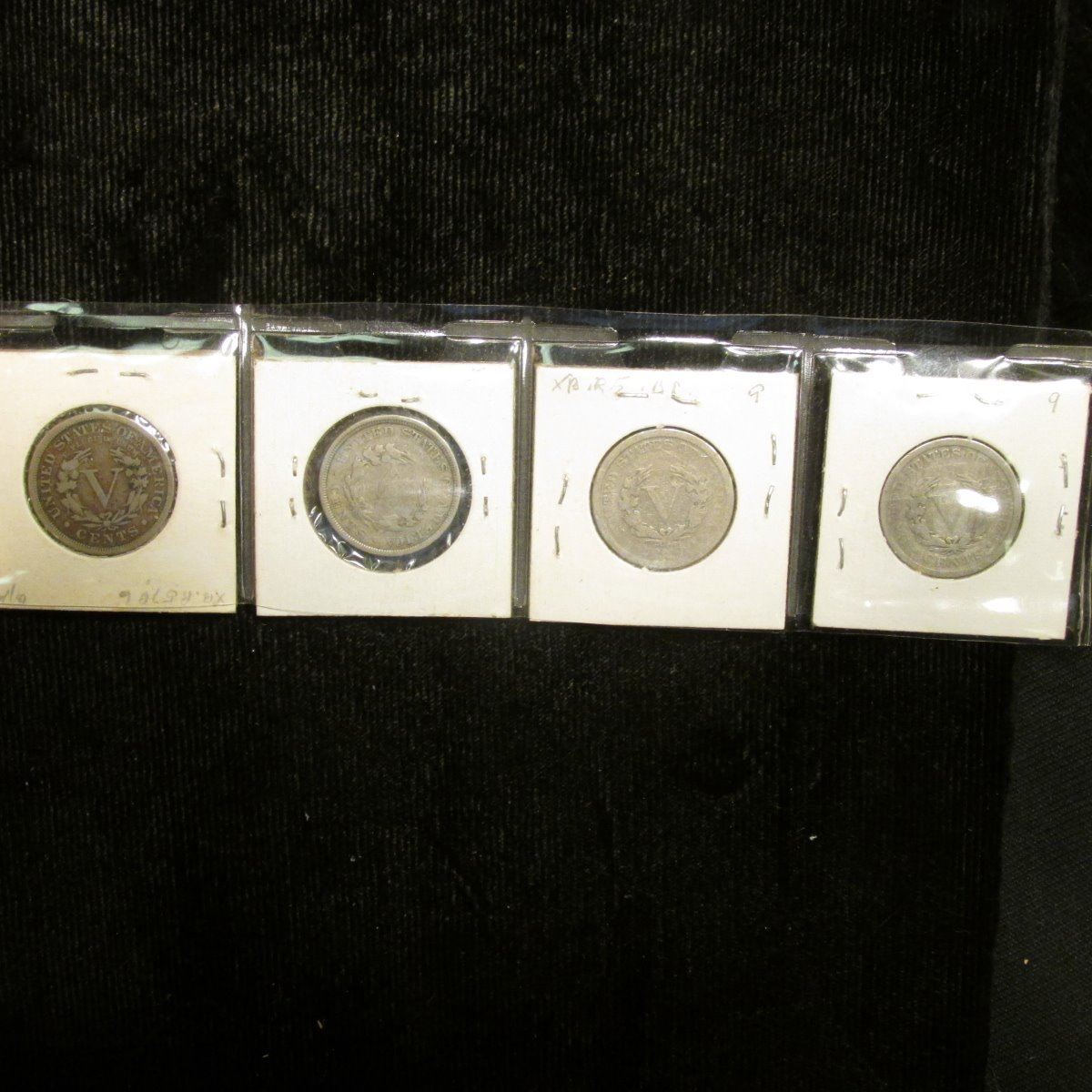 1899, 1901, 1902, & 04 U.S. Liberty "V" Nickels, Good to VG.