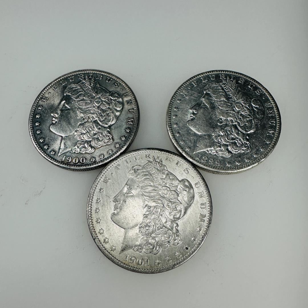 This 1899-1901 Morgan Silver Dollar consecutive set brings together three iconic years of turn-of-the-century coinage. With VG+ grading, these coins boast both aesthetic appeal and historical significance. A fine choice for collectors who appreciate the enduring legacy of Morgan dollars.