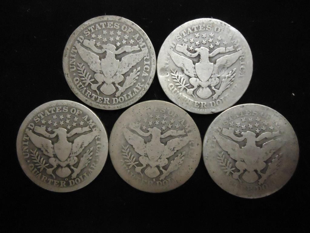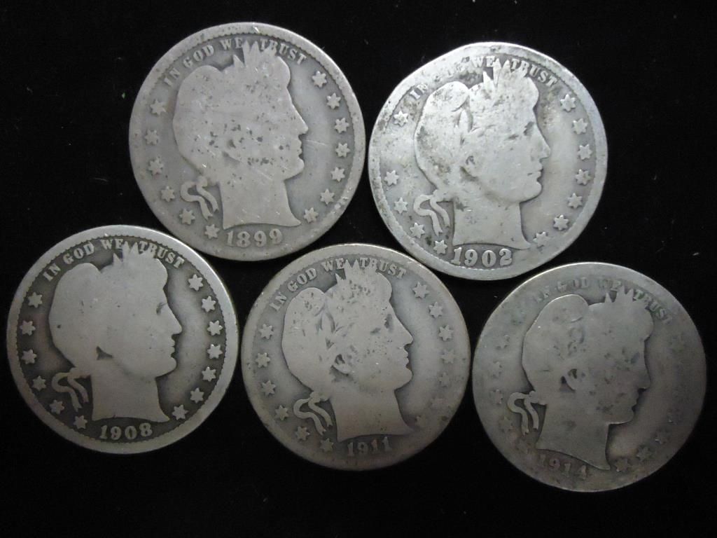 1899,1902,1908-O,11-S & 14 BARBER QUARTERS