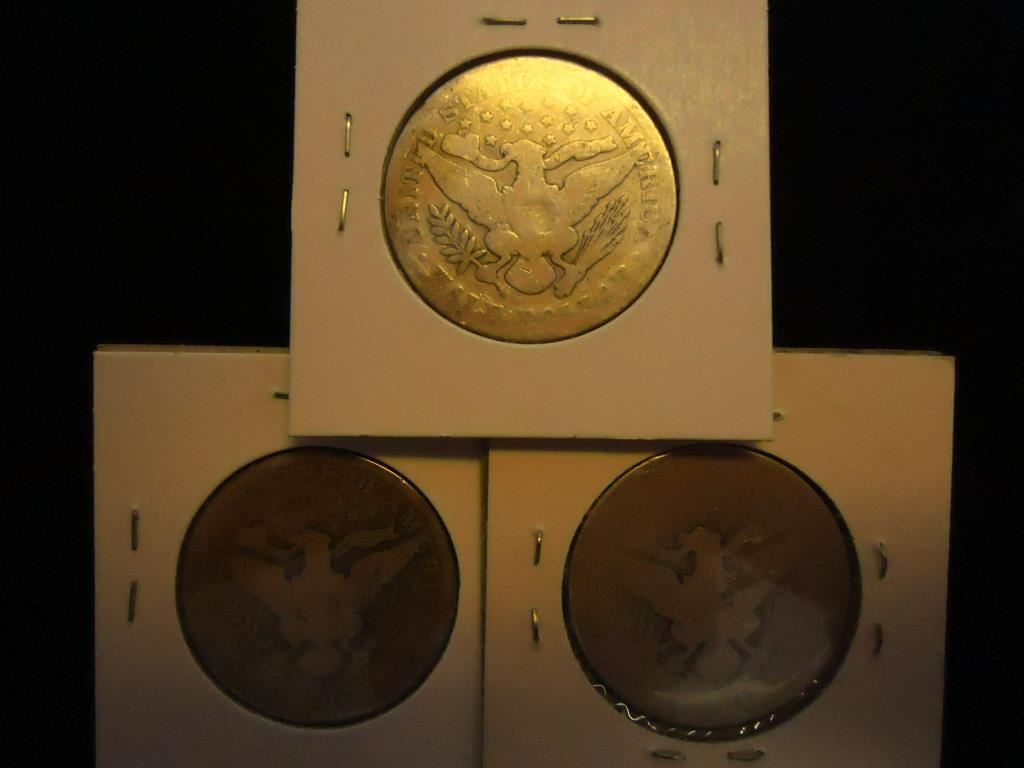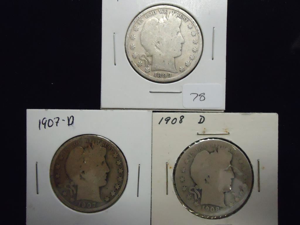 1899,1907-D & 1908-D BARBER HALF DOLLARS
