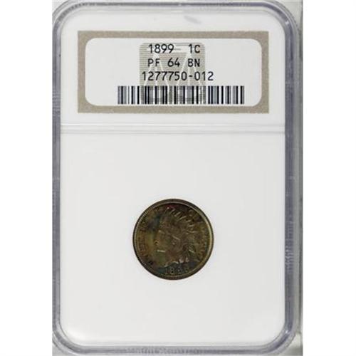 <B>1899 1C PR64 Brown NGC.</B></I> NGC Census: (6/18). PCGS Population (11/8). Mintage: 2,031. Numismedia Wsl. Price for NGC/PCGS coin in PR64: $168. (#2384)<BR><BR><B>Coin Engraver:</B> James B. Longacre<BR><BR><b>Shipping:</b> Coins & Currency (<a target="_blank" href="http://www.heritageauctions.com/common/shipping.php">view shipping information</a>)