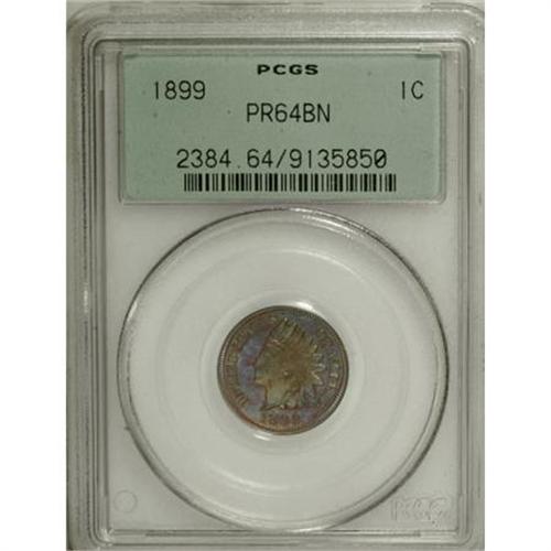 <B>1899 1C PR64 Brown PCGS.</B></I> PCGS Population (11/8). NGC Census: (6/18). Mintage: 2,031. Numismedia Wsl. Price for NGC/PCGS coin in PR64: $168. (#2384)<BR><BR><B>Coin Engraver:</B> James B. Longacre<BR><BR><b>Shipping:</b> Coins & Currency (<a target="_blank" href="http://www.heritageauctions.com/common/shipping.php">view shipping information</a>\)