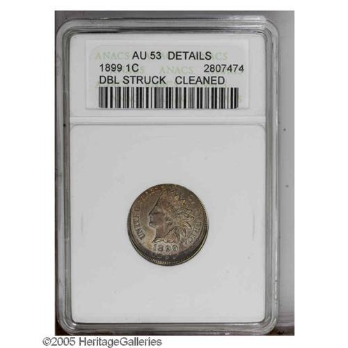 1899 1C --Double Struck, Cleaned--ANACS. AU53 Details, 1899[1C]--Double Struck, Cleaned--ANACS. AU53