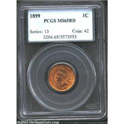 1899 1C MS65 Red PCGS. With full red color, and attractive lustrous surfaces, only a slight weakness in strike atop the first three feathers of the headdress prohibit a higher grade designation.From the Trane Collection. Important notice: We expect to be auctioning lots at the rate of 200-250 per hour. Sometimes eBay Premier live bid software cannot keep up with that pace, so we strongly recommend that you place a realistic proxy bid now as insurance to avoid disappointment. Also please note that all Heritage/CAA lots purchased through eBay Premier carry a 20% Buyer's Premium. Please make sure you read the Terms and Conditions.