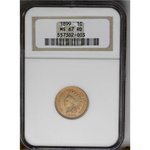 <B>1899<1C> MS67 Red NGC.</B></I> Lovely sunset-red color blankets both sides with isolated swirls of golden-tan shadings here and there. Fully original, the surfaces are sharply detailed in all areas with nary a distracting blemish to report. A strong candidate for inclusion in either a high grade type set or an advanced date set. Census: 7 in 67, 1 finer (6/06).<BR><I>From The Chief Paduke Collection.</B></I>