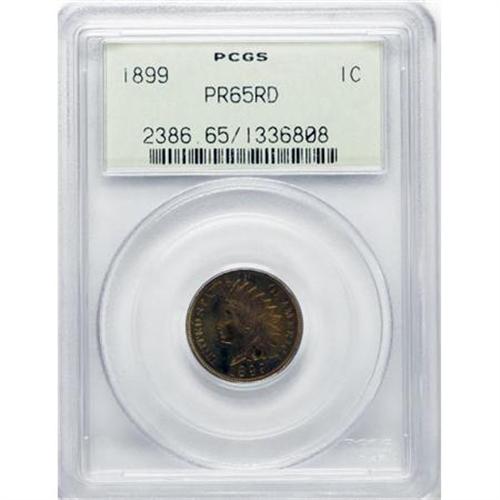 <B>1899 1C PR65 Red PCGS.</B></I> Gorgeously toned in lime-green, peach, sun-gold, and rose-red. A remarkably beautiful Gem that also benefits from a sharp strike and a carbon-free appearance. Encapsulated in an old green label holder.<BR><I>From The Chandler Collection.</B></I><BR><BR><B>Coin Engraver:</B> James B. Longacre<BR><BR><b>Shipping:</b> Coins & Currency (<a target="_blank" href="http://www.heritageauctions.com/common/shipping.php">view shipping information</a>)