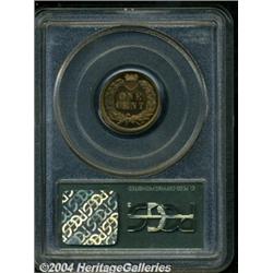 <B>1899<1C> PR65 Red and Brown PCGS.</B></I> Stunning luster highlights the contrast between the lightly frosted devices, which are a blend of tan, light-green, and copper-red, and the reflective fields that reveal soft orange, gold, and yellow-green colors that vary in hues when the coin is tilted under a light. This charming Indian proof is exquisitely struck, and possesses nearly blemish-free surfaces. Population: 50 in 65, 19 finer (3/04). <BR><BR><B>Important notice:</B> Heritage usually auctions material at the rate of 200-250 lots per hour. On some occasions eBay Live bid software or the Internet may not be able to keep up with the pace of the auction. We recommend placing a realistic absentee bid now as insurance to avoid disappointment. Occasionally the auctioneer may eliminate or reject an eBay Live bid, and the auctioneer may also reopen a lot after the close of the eBay live bidding (usually because we missed an audience bid), and may reject your bid even if it shows you as the winning bidder. By bidding via eBay Live, you agree that Heritage may award the lot to another bidder at its sole discretion under the circumstances described above or any other reasonable circumstances. Since eBay bids are not shown to us until we open the lot on the floor, we treat those bids just like floor bids. In most cases the floor responds before the eBay bid is presented to us, due to Internet lag time, so for consistency we have made it a policy that floor bids are always considered first over tie eBay live bids. Also please note that all Heritage lots purchased through eBay Live carry a 20% Buyer's Premium. Please make sure you read the Terms and Conditions before you bid.