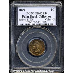 1899 1C PR66 Red PCGS. A lightly frosted, Gem specimen with lemon-yellow and orange highlights that are a bit more noticeable on the obverse. A few short discoloration streaks affect the facial area under close examination. Population: 22 in 66, 11 finer (10/03).From the Palm Beach Collection. Important notice: Heritage usually auctions material at the rate of 200-250 lots per hour. On some occasions eBay Live bid software or the Internet may not be able to keep up with the pace of the auction. We recommend placing a realistic absentee bid now as insurance to avoid disappointment. Occasionally the auctioneer may eliminate or reject an eBay Live bid, and the auctioneer may also reopen a lot after the close of the eBay live bidding (usually because we missed an audience bid), and may reject your bid even if it shows you as the winning bidder. By bidding via eBay Live, you agree that Heritage may award the lot to another bidder at its sole discretion under the circumstances described above or any other reasonable circumstances. Also please note that all Heritage lots purchased through eBay Live carry a 20% Buyer's Premium. Please make sure you read the Terms and Conditions before you bid.