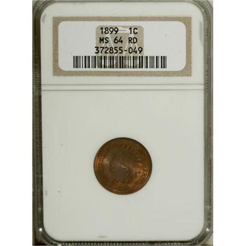<B>1899 1C MS64 Red NGC.</B></I> NGC Census: (118/202). PCGS Population (252/316). Mintage: 53,600,032. Numismedia Wsl. Price for NGC/PCGS coin in MS64: $142. (#2204)<BR><BR><B>Coin Engraver:</B> James B. Longacre<BR><BR><b>Shipping:</b> Coins & Currency (<a target="_blank" href="http://www.heritageauctions.com/common/shipping.php">view shipping information</a>)