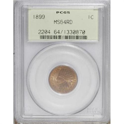 <B>1899 1C MS64 Red PCGS.</B></I> PCGS Population (254/318). NGC Census: (120/204). Mintage: 53,600,032. Numismedia Wsl. Price for NGC/PCGS coin in MS64: $142. (#2204)<BR><BR><B>Coin Engraver:</B> James B. Longacre<BR><BR><b>Shipping:</b> Coins & Currency (<a target="_blank" href="http://www.heritageauctions.com/common/shipping.php">view shipping information</a>)