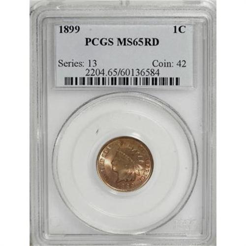 <B>1899 1C MS65 Red PCGS.</B></I> PCGS Population (234/84). NGC Census: (145/59). Mintage: 53,600,032. Numismedia Wsl. Price for NGC/PCGS coin in MS65: $440. (#2204)<BR><BR><B>Coin Engraver:</B> James B. Longacre<BR><BR><b>Shipping:</b> Coins & Currency (<a target="_blank" href="http://www.heritageauctions.com/common/shipping.php">view shipping information</a>)
