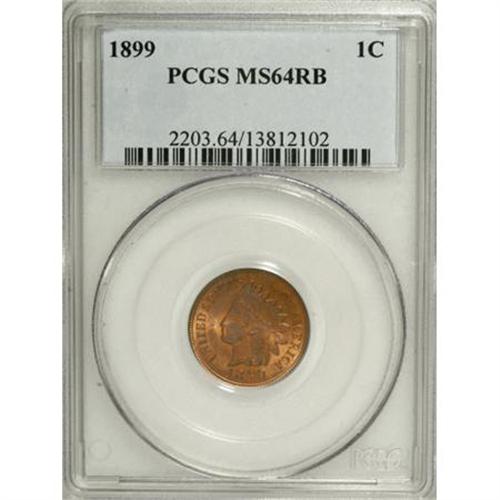 <B>1899 1C MS64 Red and Brown PCGS.</B></I> PCGS Population (387/81). NGC Census: (214/206). Mintage: 53,600,032. Numismedia Wsl. Price for NGC/PCGS coin in MS64: $81. (#2203)<BR><BR><B>Coin Engraver:</B> James B. Longacre<BR><BR><b>Shipping:</b> Coins & Currency (<a target="_blank" href="http://www.heritageauctions.com/common/shipping.php">view shipping information</a>)