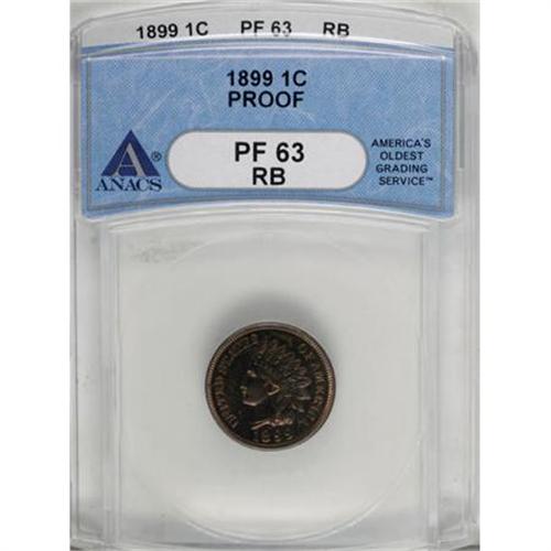 <B>1899 1C PR63 Red and Brown ANACS.</B></I> NGC Census: (10/114). PCGS Population (21/153). Mintage: 2,031. Numismedia Wsl. Price for NGC/PCGS coin in PR63: $142. (#2385)<BR><BR><B>Coin Engraver:</B> James B. Longacre<BR><BR><b>Shipping:</b> Coins & Currency (<a target="_blank" href="http://www.heritageauctions.com/common/shipping.php">view shipping information</a>)