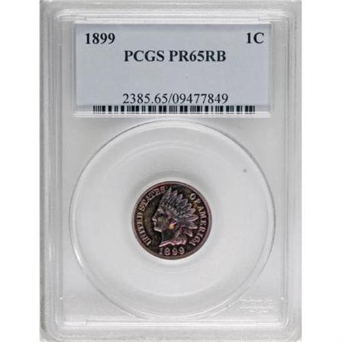 <B>1899 1C PR65 Red and Brown PCGS.</B></I> PCGS Population (52/24). NGC Census: (54/19). Mintage: 2,031. Numismedia Wsl. Price for NGC/PCGS coin in PR65: $360. (#2385)<BR><BR><B>Coin Engraver:</B> James B. Longacre<BR><BR><b>Shipping:</b> Coins & Currency (<a target="_blank" href="http://www.heritageauctions.com/common/shipping.php">view shipping information</a>)