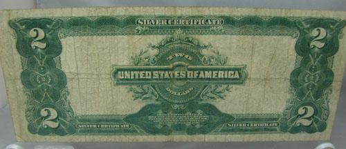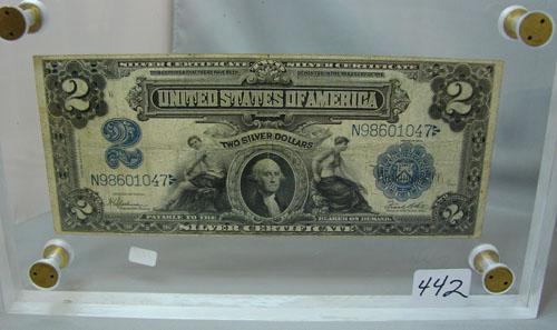 1899 $2.00 Silver Certificate F - encased in Lucite