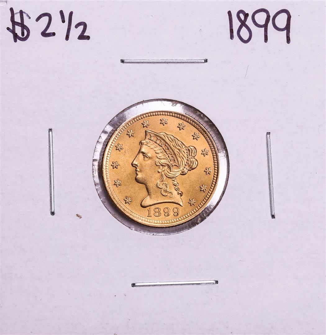 One 1899 $2 1/2 Liberty Head Quarter Eagle Gold Coin.