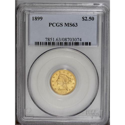 <B>1899<$2 1/2> MS63 PCGS.</B></I> This example boasts a sharp strike, attractive satiny fields, and medium gold color.<BR><I>From The Della Collection.</B></I>