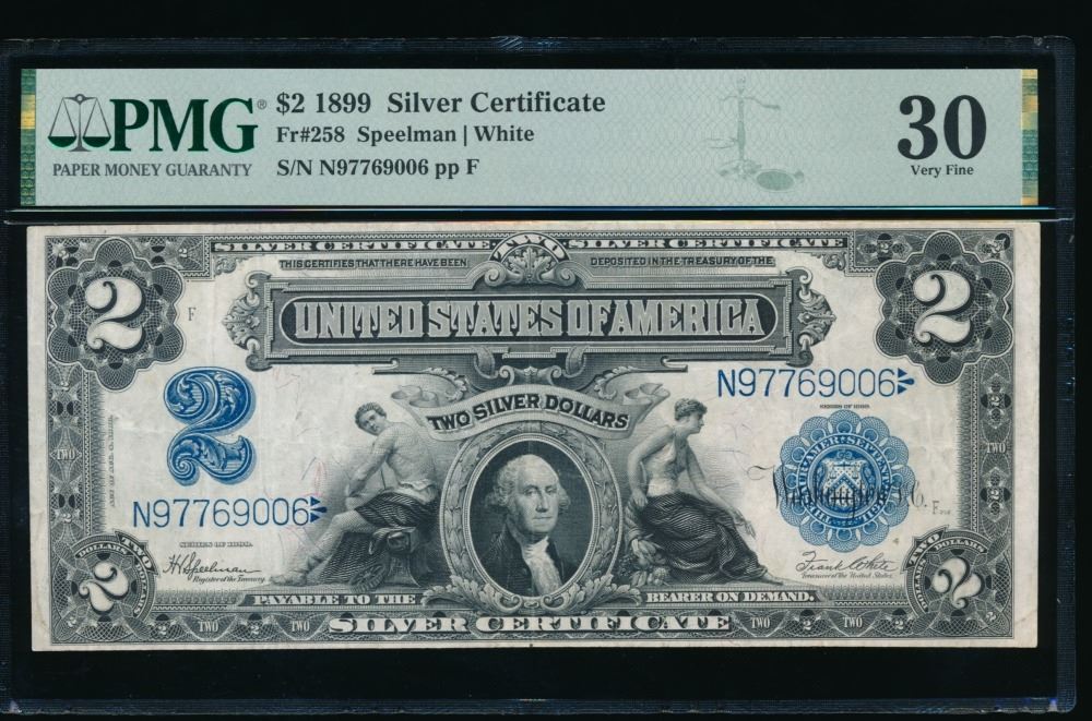 One 1899 $2 Mini Porthole Silver Cert PMG 30.