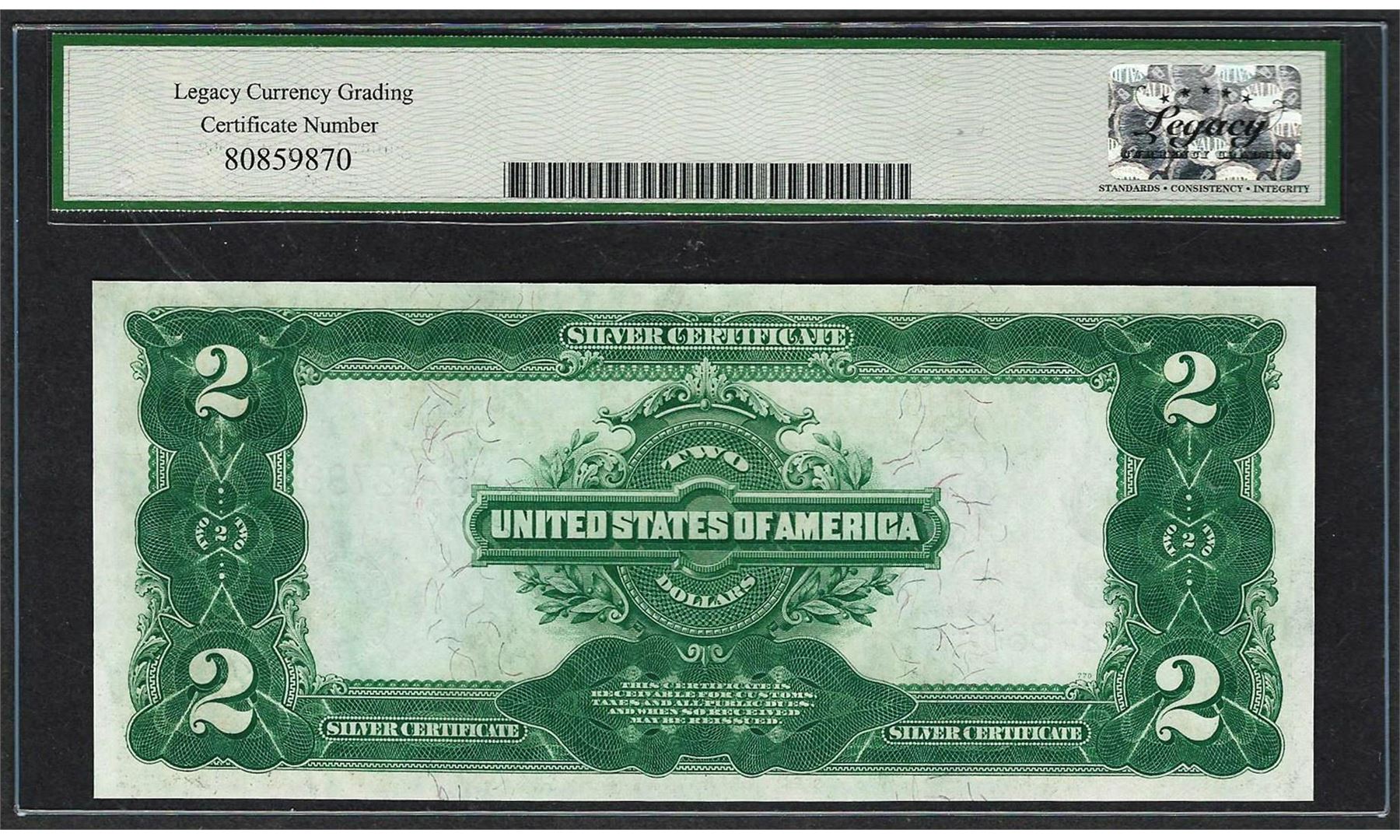 One 1899 $2 Mini-Porthole Silver Certificate Note Fr.253 Legacy Gem New 66PPQ.