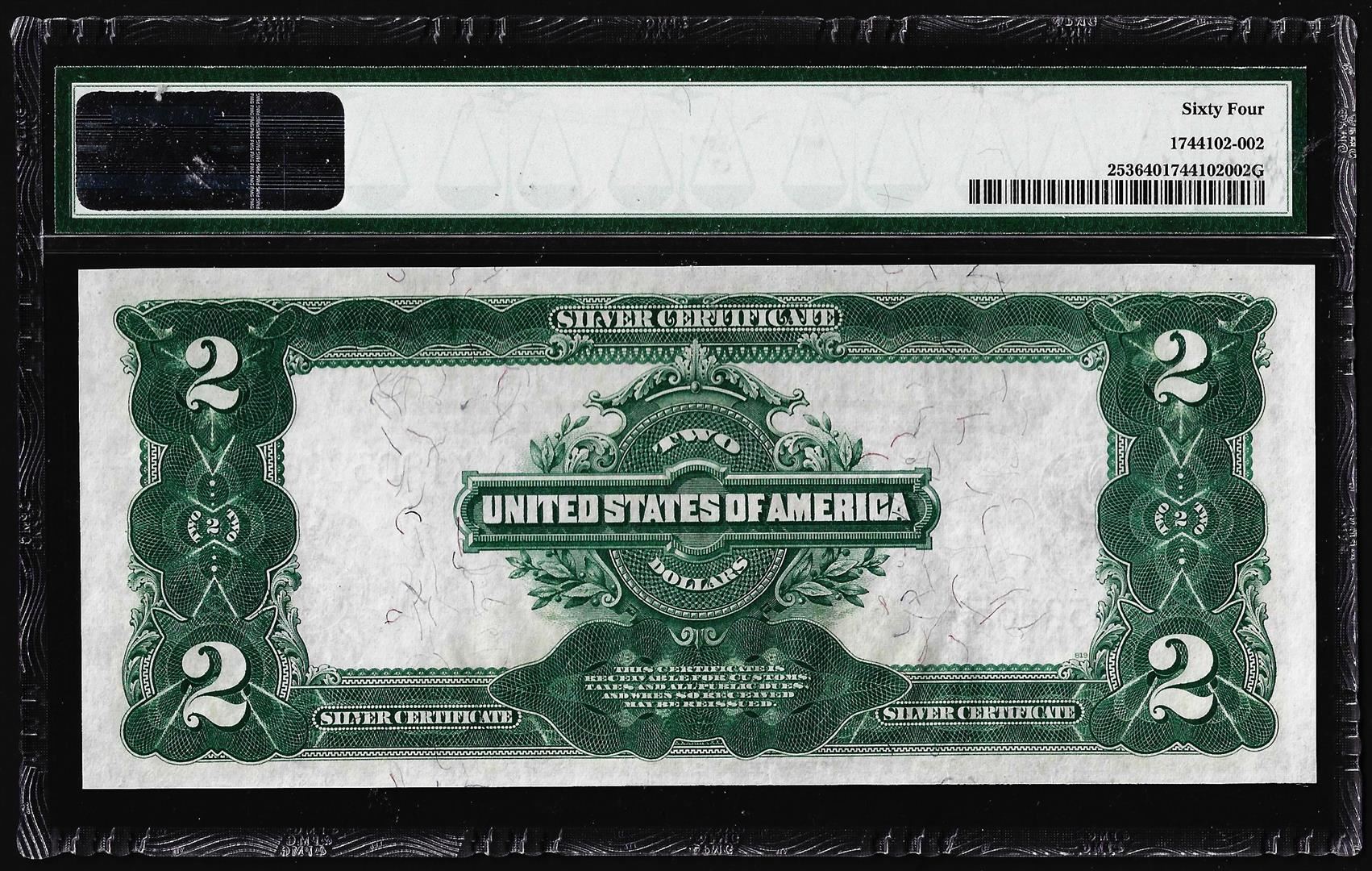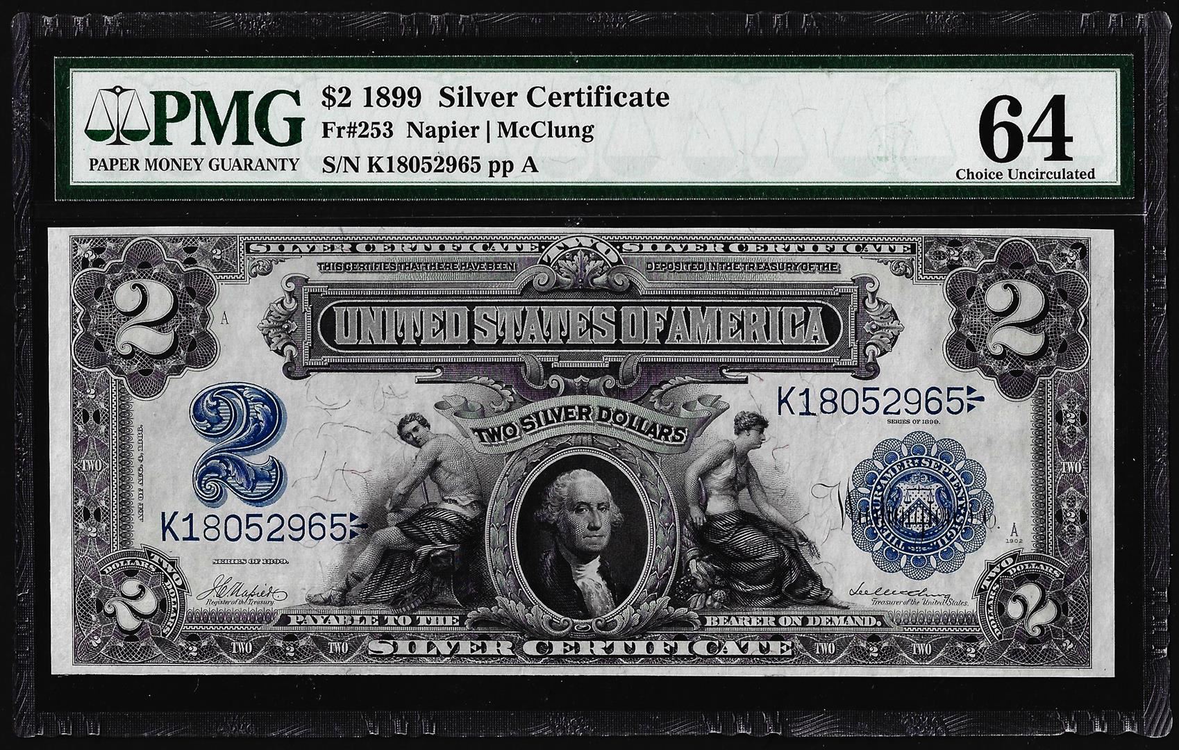 One 1899 $2 Mini-Porthole Silver Certificate Note Fr.253 PMG Choice Uncirculated 64. PMG Certified.