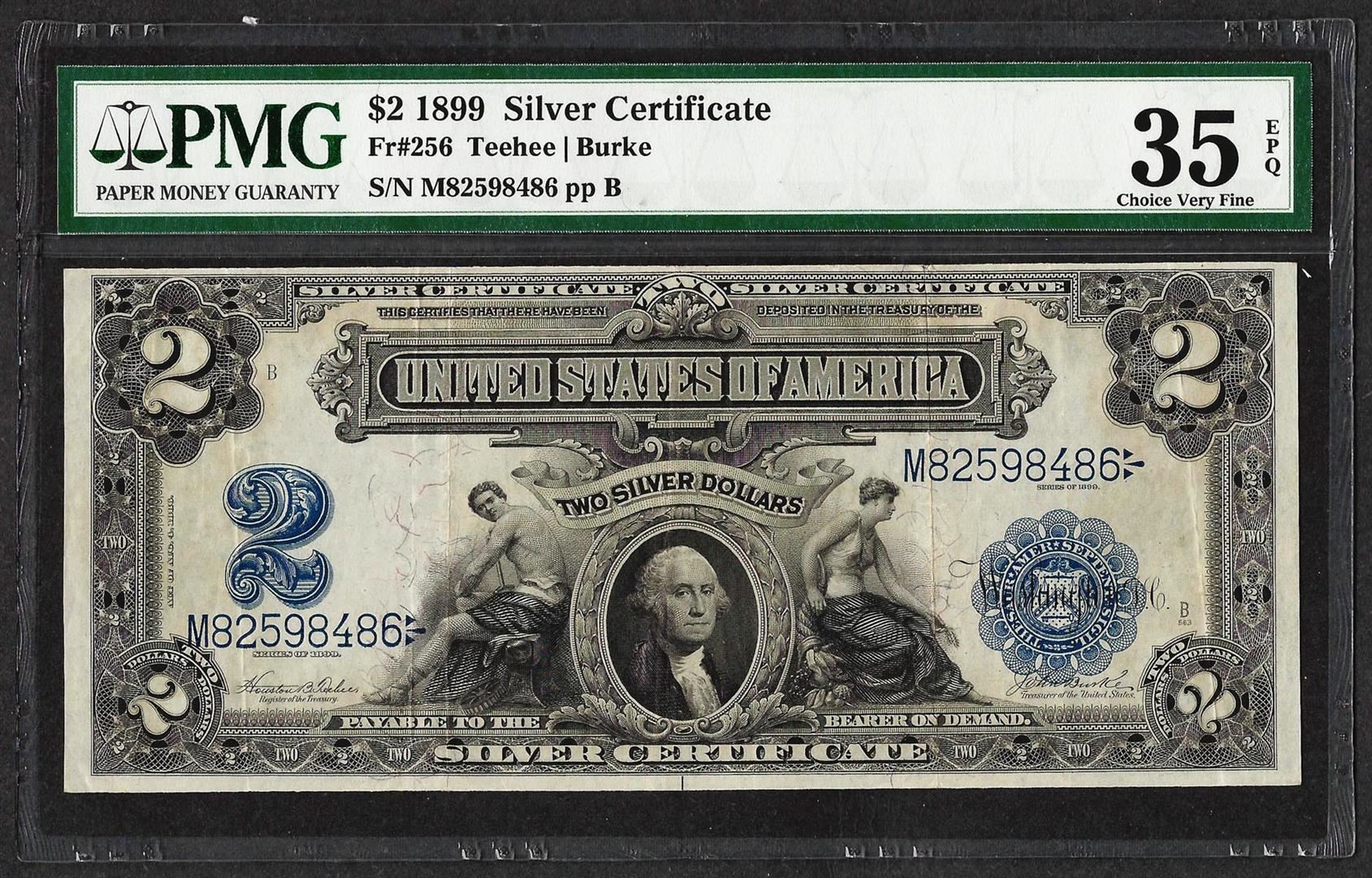 One 1899 $2 Mini-Porthole Silver Certificate Note Fr.256 PMG Choice Very Fine 35EPQ. PMG Certified.