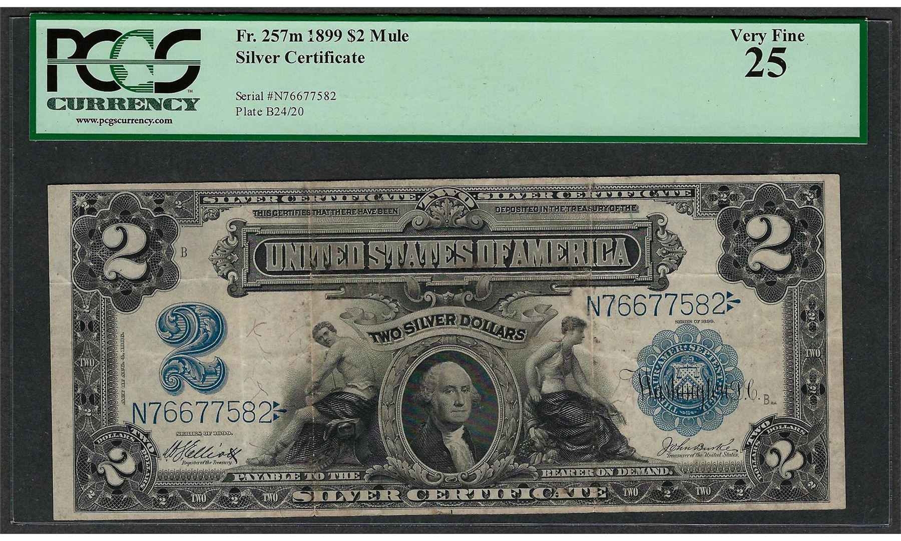 1899 $2 Mini-Porthole Silver Certificate Note Fr.257m PCGS Very Fine 25