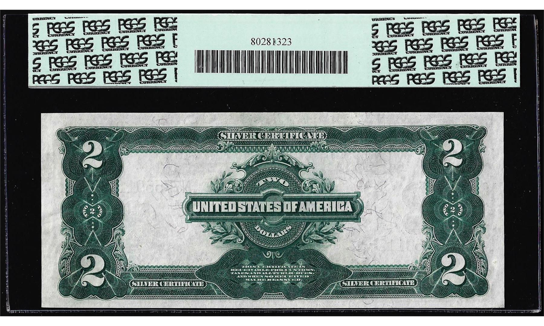 One 1899 $2 Mini-Porthole Silver Certificate Note Fr.258 PCGS Very Choice New 64PPQ. PCGS Graded.