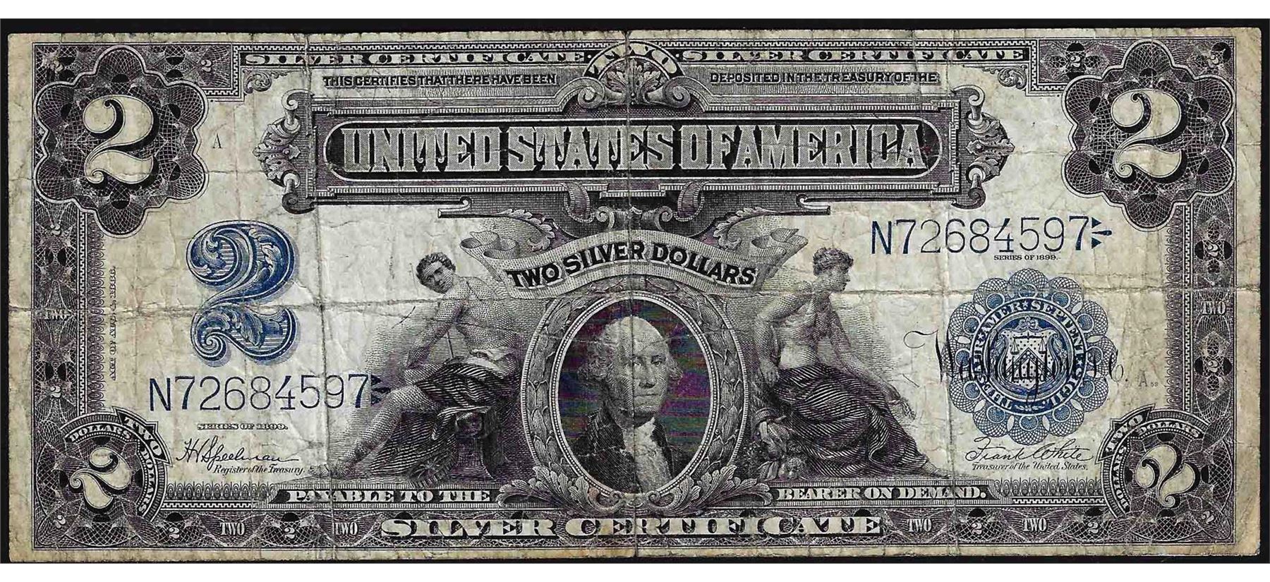 One 1899 $2 Mini Porthole Silver Certificate Note.
