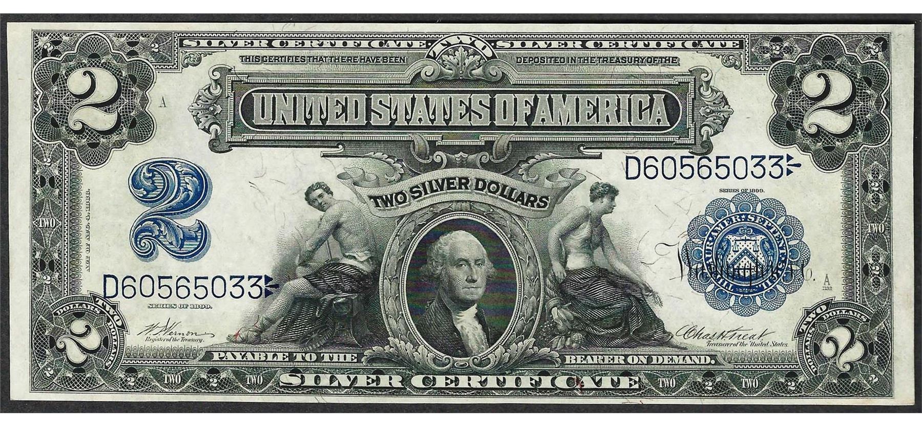 One 1899 $2 Mini-Porthole Silver Certificate Note.