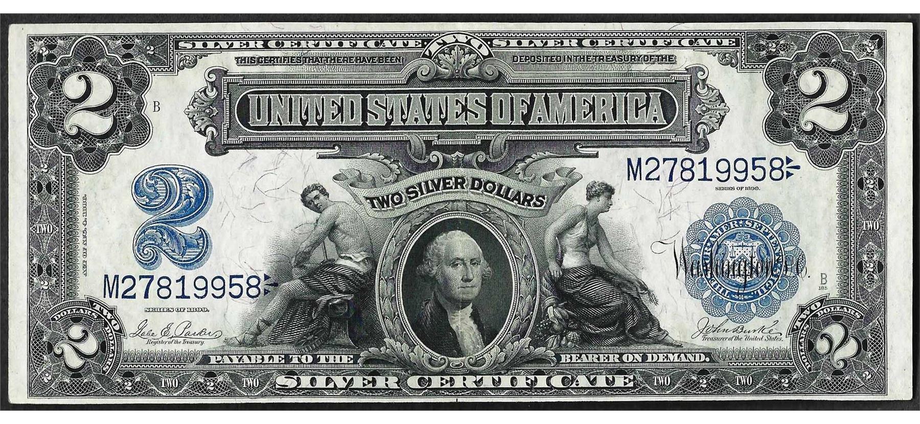 One 1899 $2 Mini Porthole Silver Certificate Note.