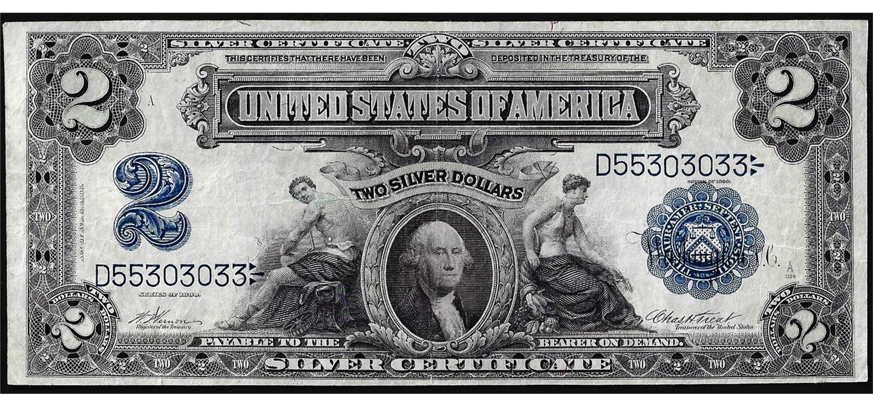 One 1899 $2 Mini-Porthole Silver Certificate Note.