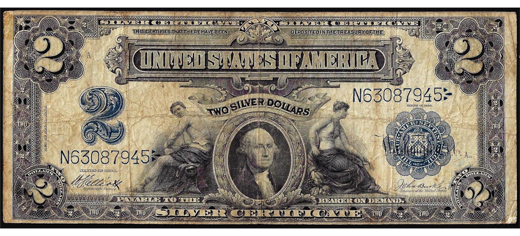 One 1899 $2 Mini-Porthole Silver Certificate Note.