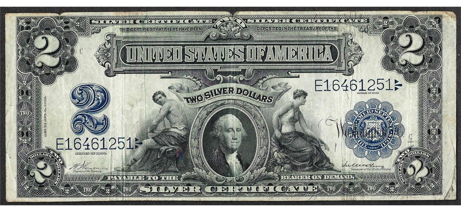 One 1899 $2 Mini-Porthole Silver Certificate Note.