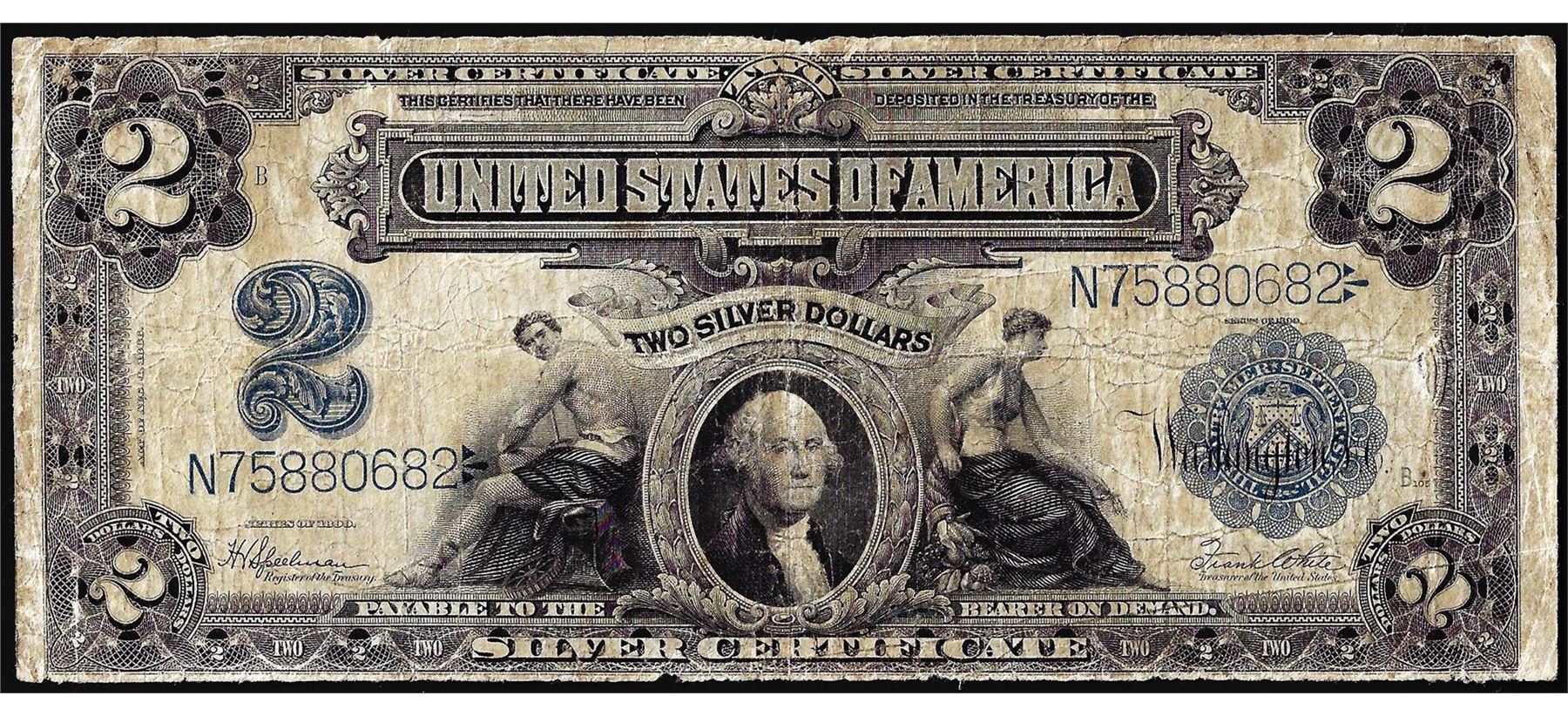 One 1899 $2 Mini-Porthole Silver Certificate Note.