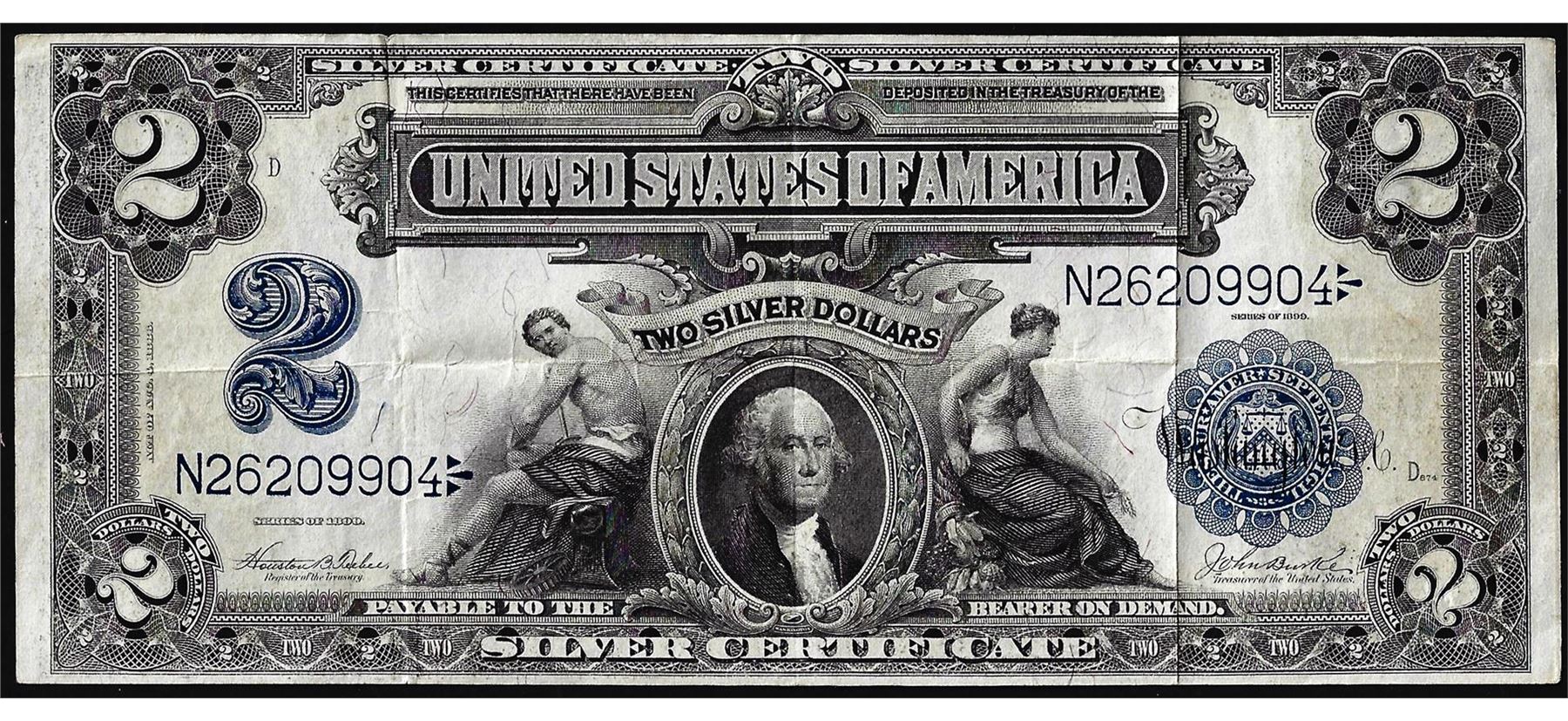 One 1899 $2 Mini-Porthole Silver Certificate Note.
