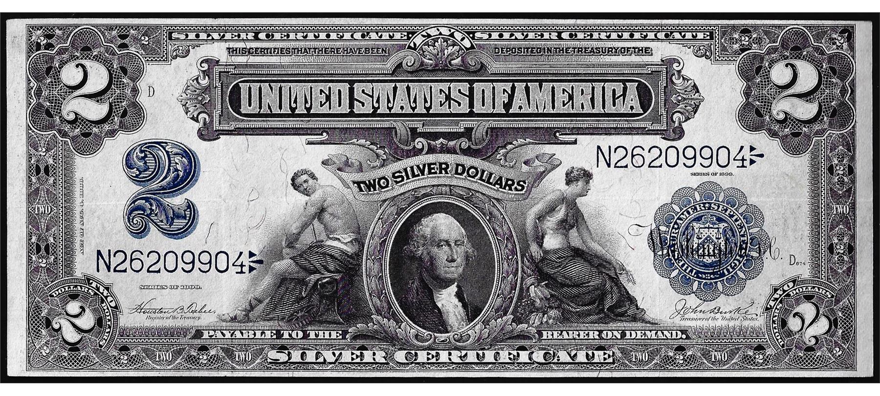 One 1899 $2 Mini-Porthole Silver Certificate Note.
