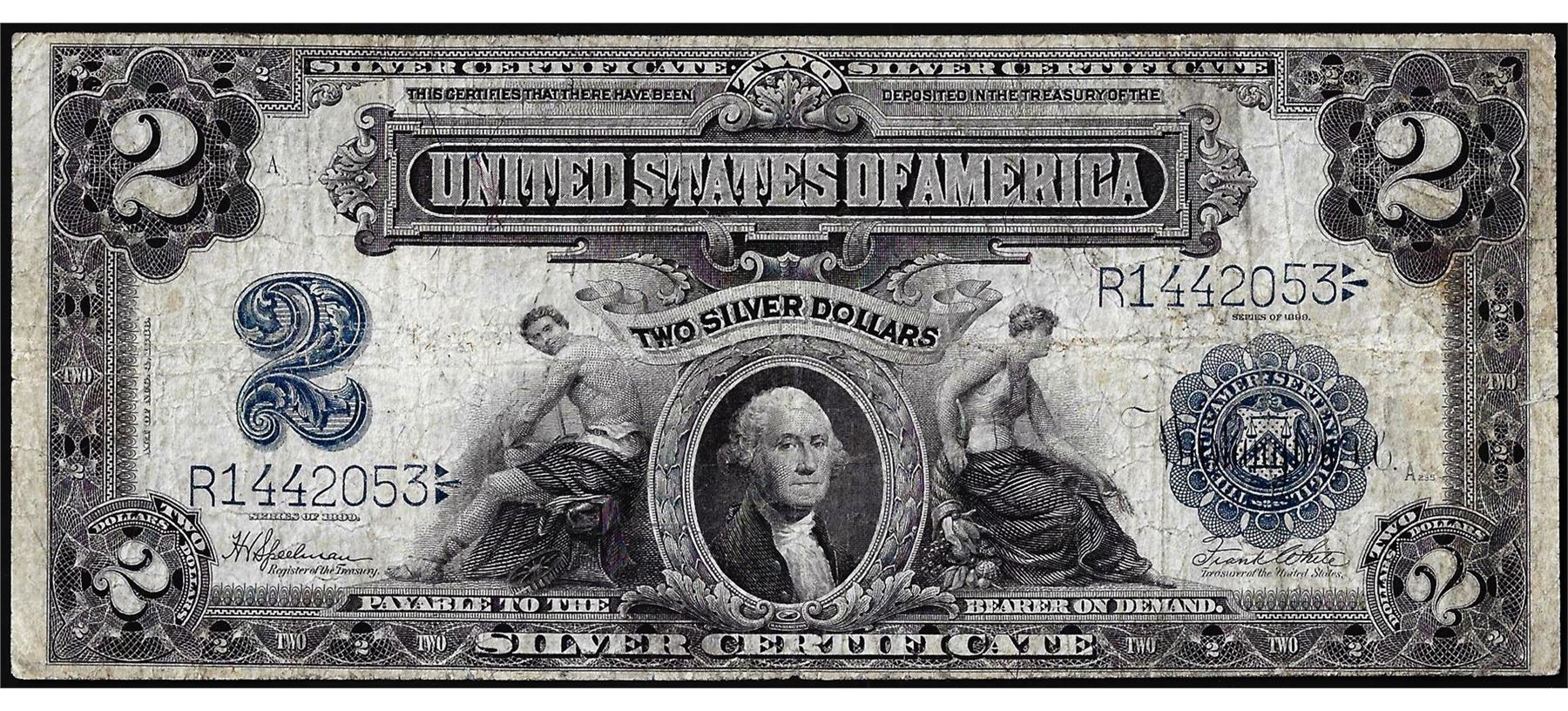 One 1899 $2 Mini Porthole Silver Certificate Note.