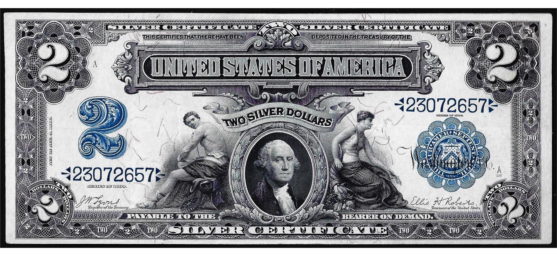 One 1899 $2 Mini-Porthole Silver Certificate Note.