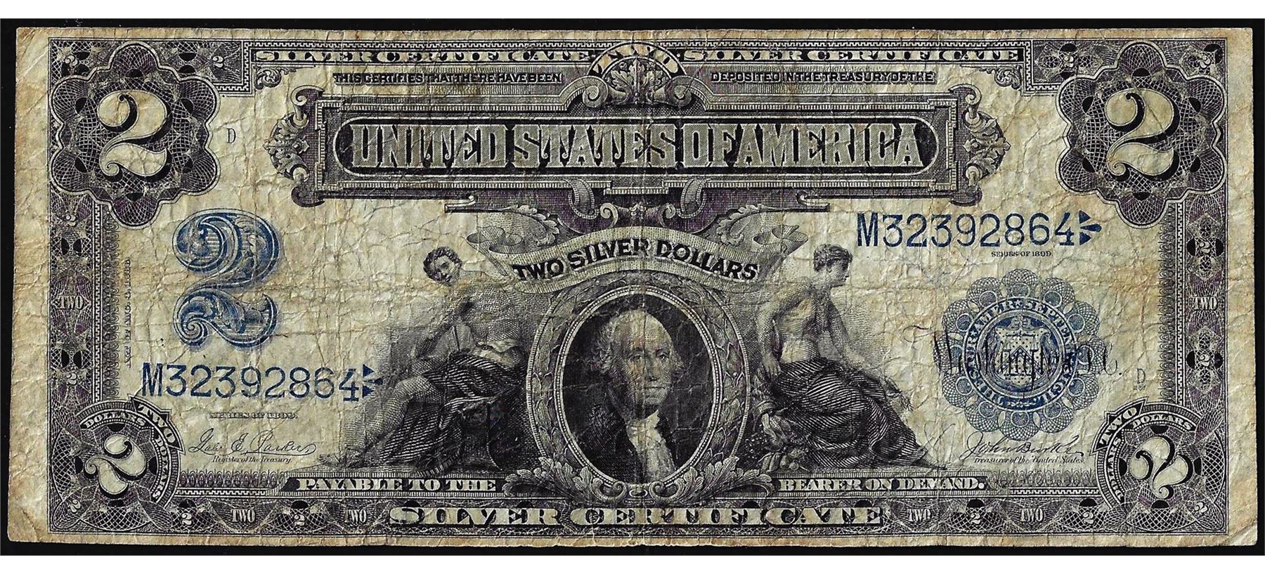 One 1899 $2 Mini-Porthole Silver Certificate Note.