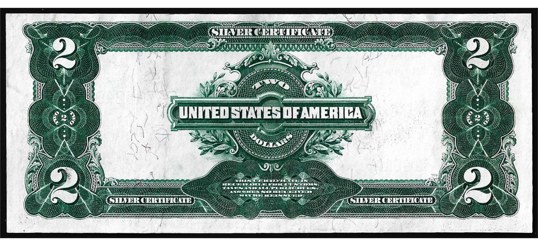One 1899 $2 Mini-Porthole Silver Certificate Note.