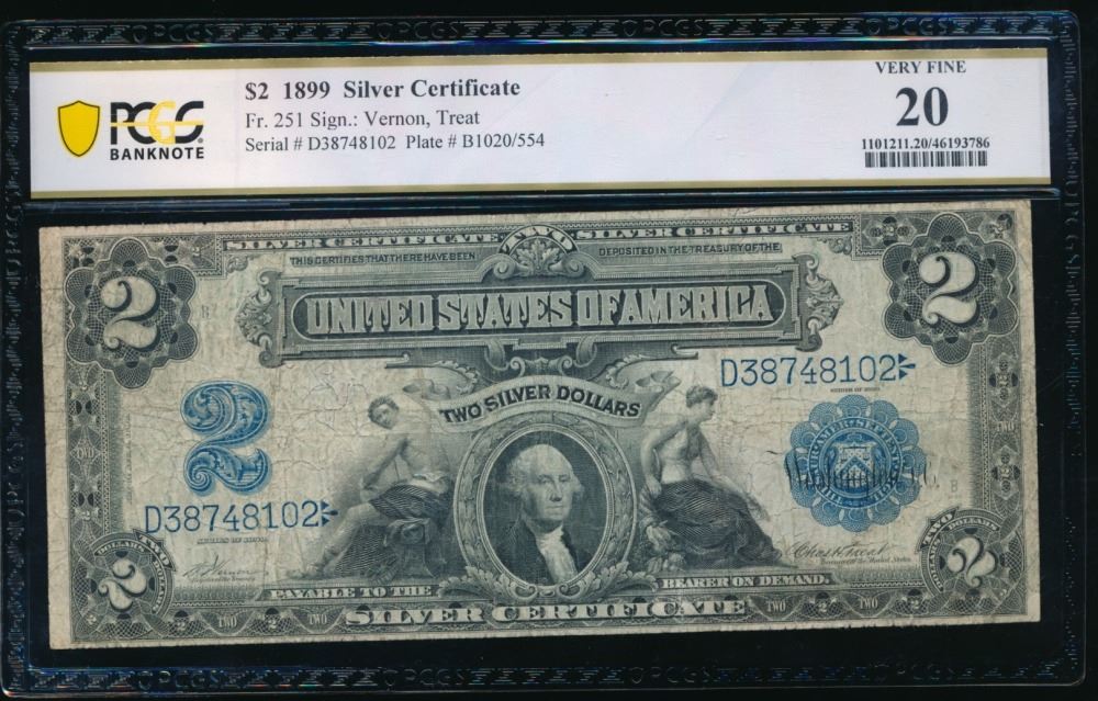 One 1899 $2 Mini Porthole Silver Certificate PCGS 20.