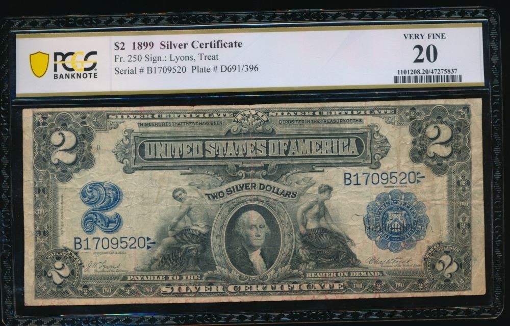 One 1899 $2 Mini Porthole Silver Certificate PCGS 20.