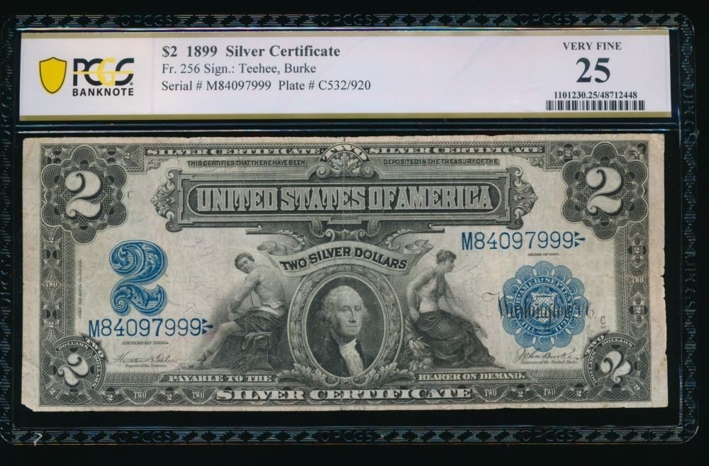 One 1899 $2 Mini Porthole Silver Certificate PCGS 25.