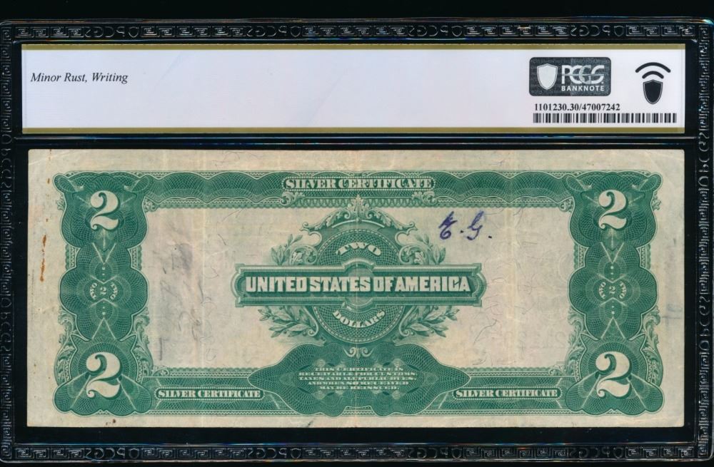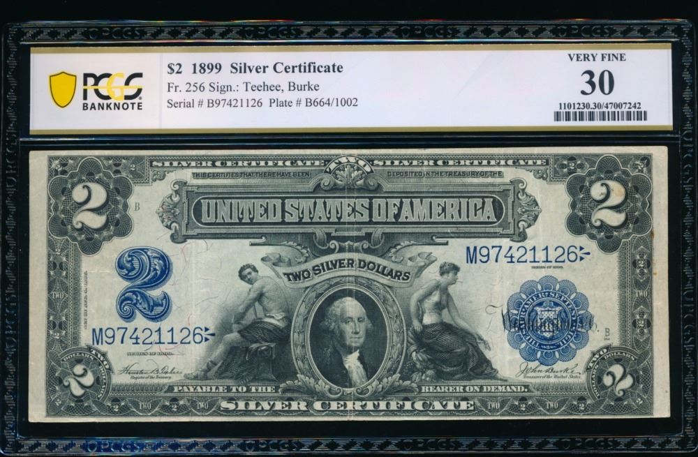 One 1899 $2 Mini Porthole Silver Certificate PCGS 30.